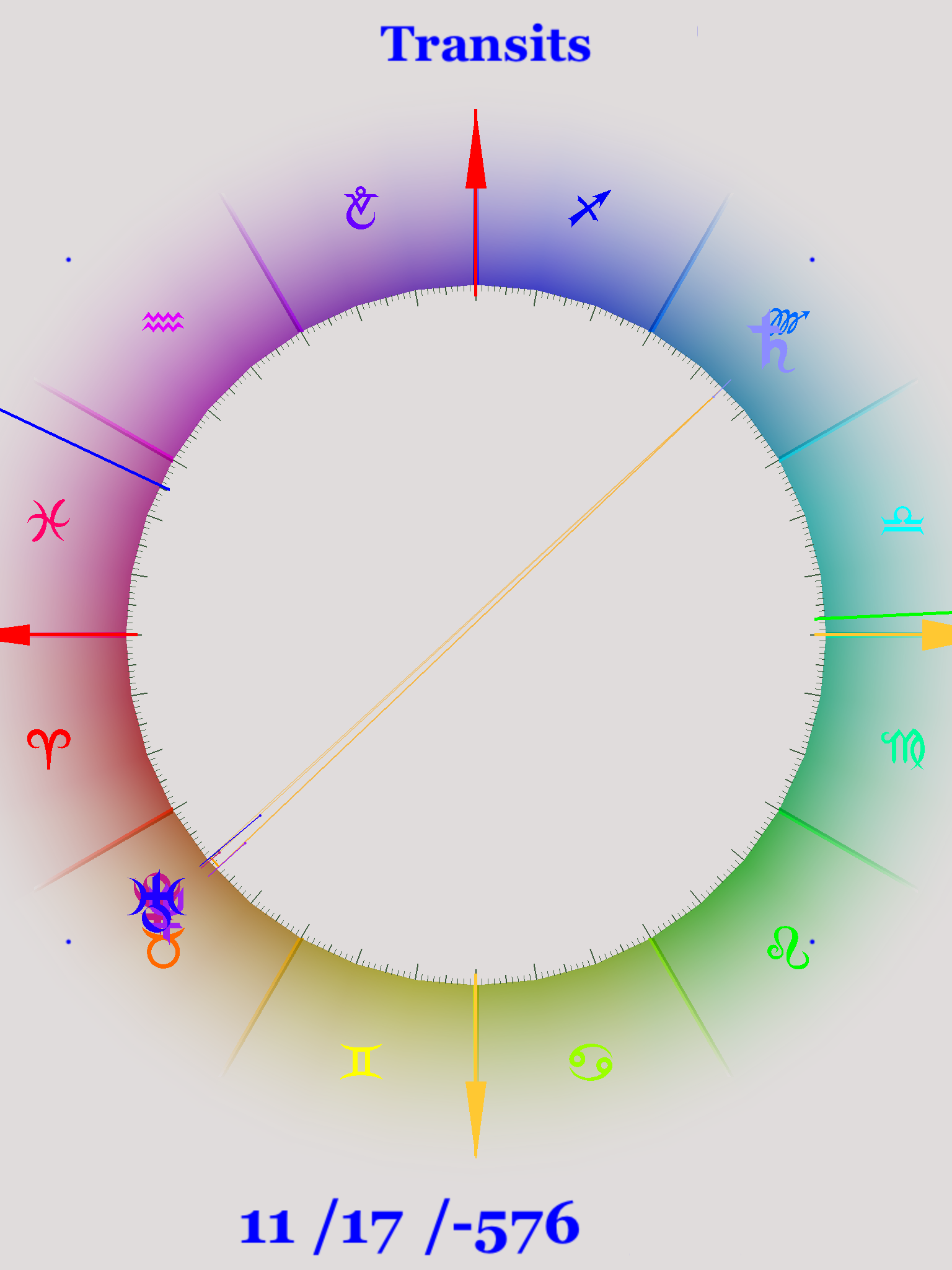 German philosopher Karl Jaspers coined the term Axial Age to describe the period 800-200 BCE which  was a time of intense growth leading to the modern world.  Some scholars criticize the concept of the Axial Age, though it is notable that so many important events  happened in a short period of time, as we detail below.  But then, of course, most scholars criticize the concept of astrology.  What I want to  talk about is the peak of the Axial Age, the Sixth Century BCE  in which an incredible amount of what we call modern thinking developed throughout the world, coinciding with a tripe conjunction of the three outer planets – Uranus, Neptune, Pluto – which were of course unknown at that time. In the years following this conjunction many notable events occurred. It was almost as if a rock had been thrown into earth’s timeline and the ripples followed for centuries.