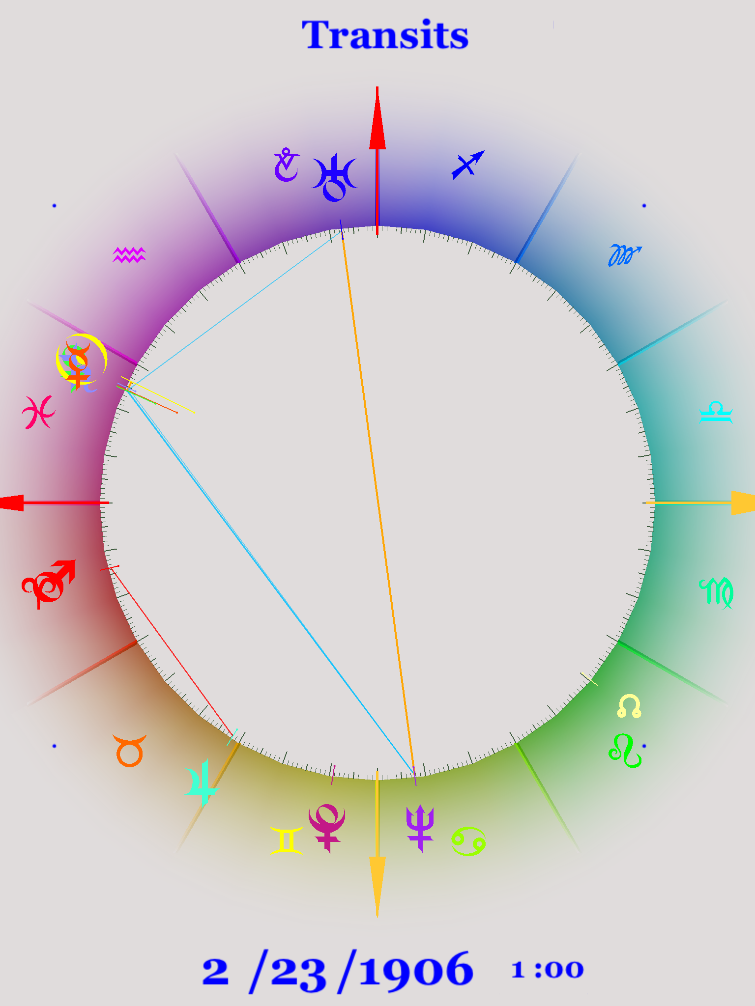 In this period there were not only crossings of the cardinal axis by all three outer planets, but there were two important oppositions that describe so much of what was going on in the world at the dawn of the Twentieth Century.  The Uranus opposite Pluto was strongest in the first half of the first decade of the new century, and the Neptune opposite Pluto was strongest during the second half of the decade, extending through a few years of the second decade.   This period was filled with all kinds of  changes, which I will briefly outline below.  A good description of this period is found in many books, such as The Vertigo Years by Philip Blom.