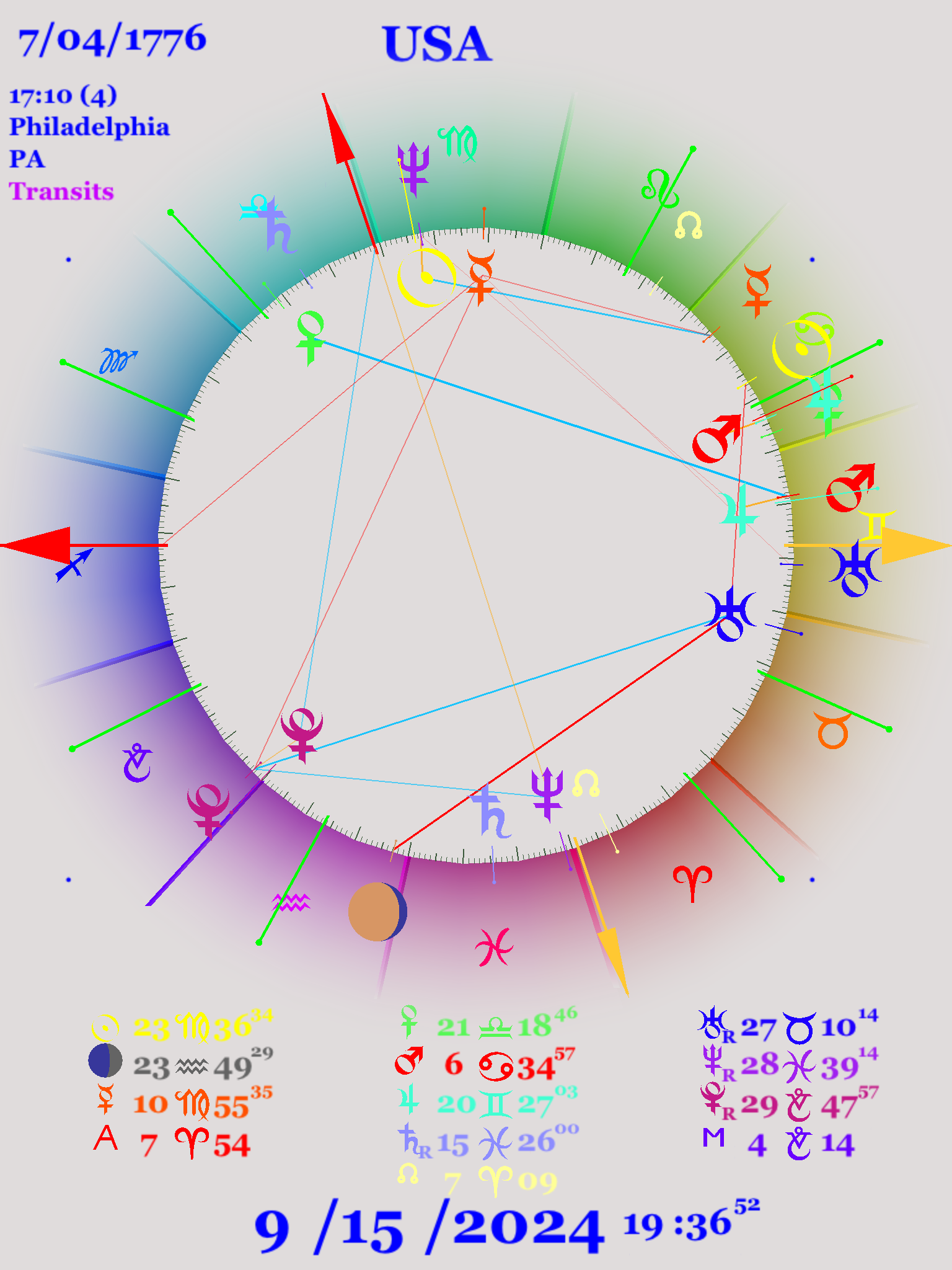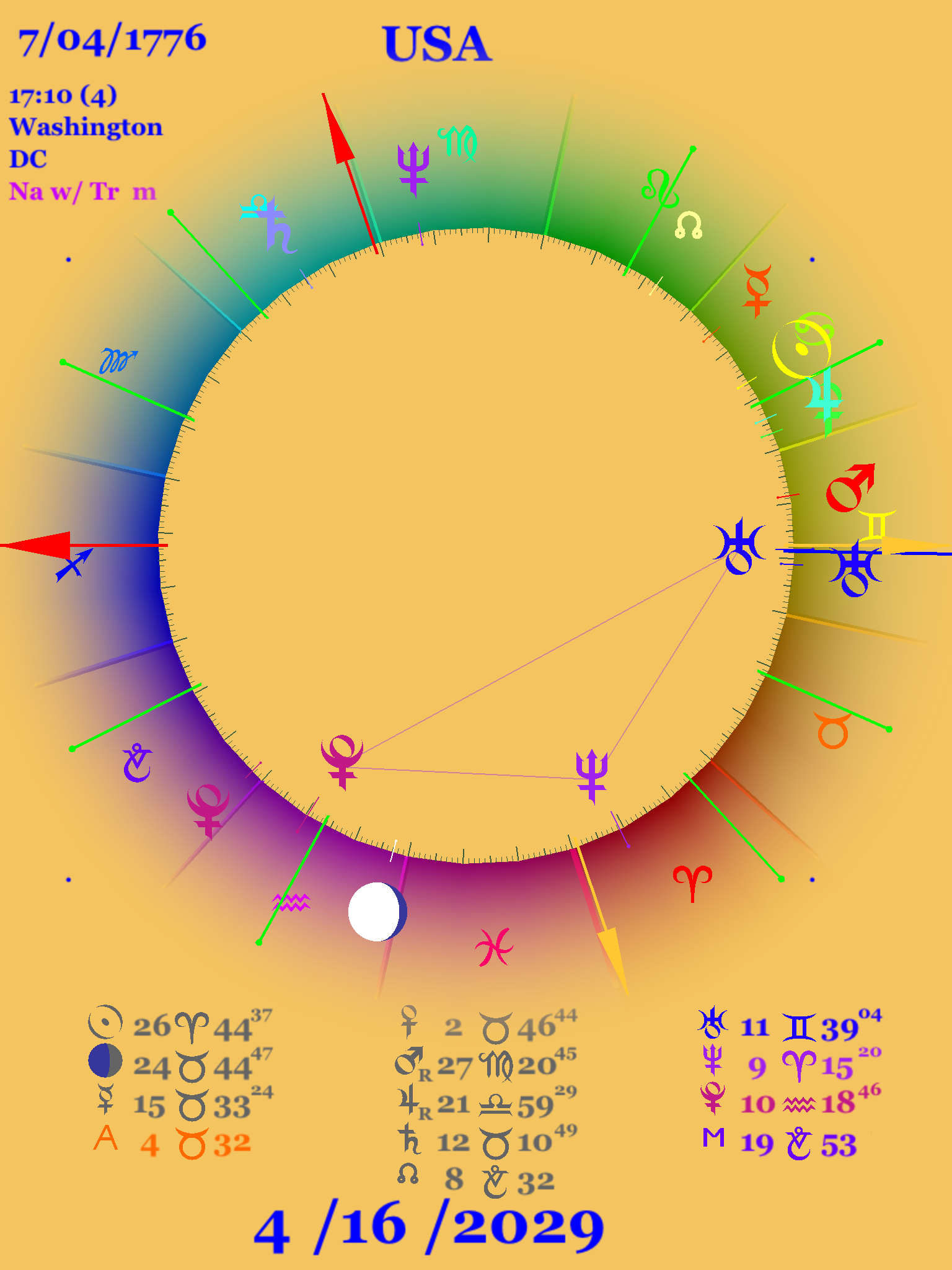 There is also a midpoint configuration with Uranus_Pluto to the Midheaven of the United States, with the Saturn-Nptune conjunction also making a midpoint to the MC.
