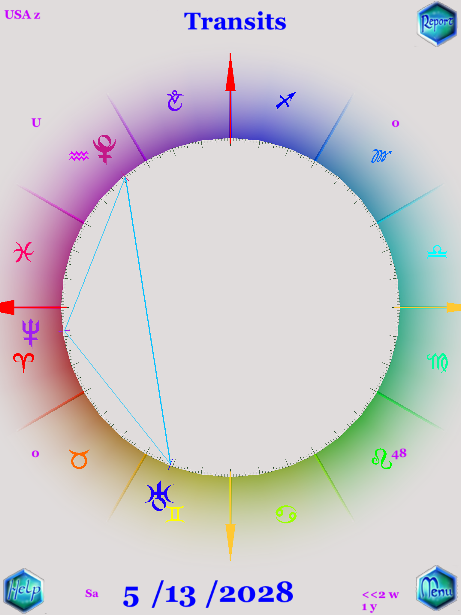But wait, there’s more. For a year, when the midpoint’s apex planet Neptune is on the Aries point, Saturn is conjunct Neptune, as shown in the next chart. Saturn-Neptune conjunctions (squares, oppositions) are very complex and important . We have discussed this combination over the last month. Briefly, Saturn-Neptune indicates a long time behavior that at one time seemed like a good idea, but now its failure is glaringly obvious. The fact that the conjunction takes place at the Aries point, and is the apex of the midpoint involving two of the outer planets makes it even more important. The entire world feels that its previous behavior is no longer worth pursuing.