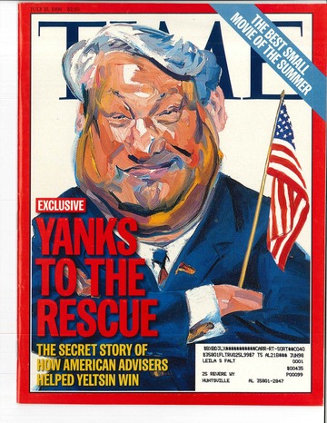 The last time this conjunction happened was in 1989. That year the conjunction happen three times; the most interesting was the third, on November 13, when Jupiter was closely opposite the conjunction. This Jupiter-Saturn opposition marked the midpoint — Full Jupiter so to speak — of the twenty year bi-decade that is the Eighties/Nineties. The fall on the Berlin Wall, which heralded the fall of the Soviet Union and other Communist Countries in Eastern Europe, happened on November 9, 1989. This supposedly marked the end of the Cold War (that had started at the end of the Second World War) and according to some this also marked the End of History (see The End of History and the Last Man by Francis Fukuyama which was published in 1992). This also involved a big change in the Western powers (see Cold War Triumphalism edited by Ellen Schrecker and published 12 years later). The United States took victory laps after this happened and President Clinton even managed to determine who the leader of the newly-born Russia was, as a cover story entitled “Yanks to the Rescue” shows. One can easily imagine the uproar if the Russian President was accused of helping an American win the Presidency!!