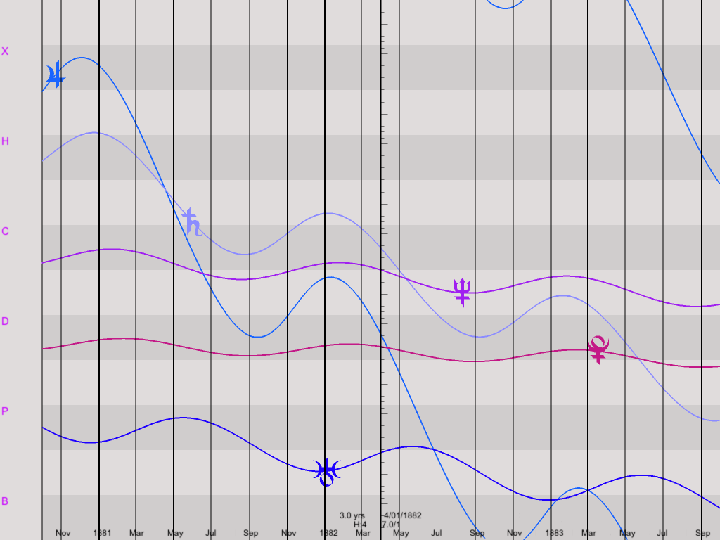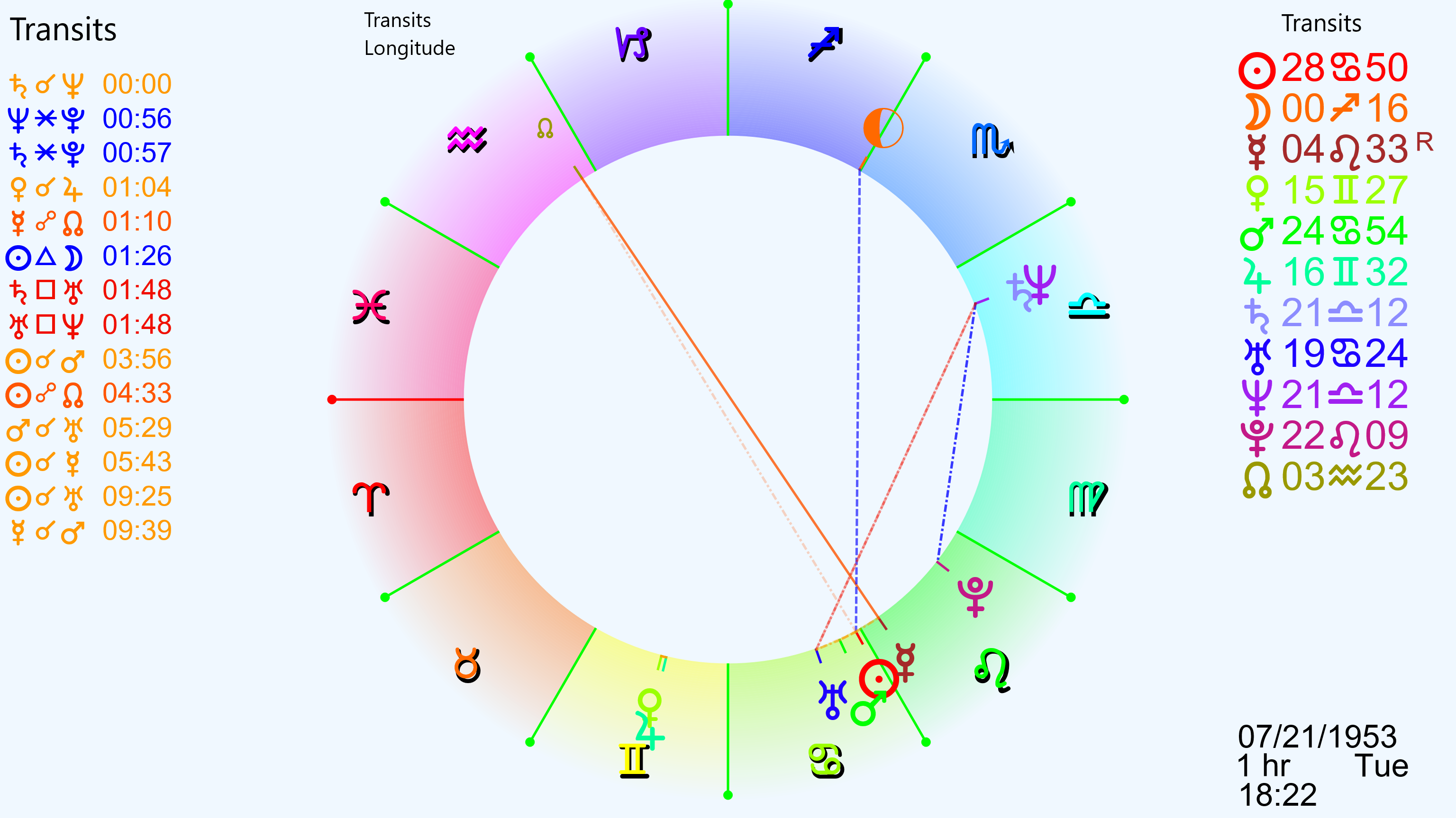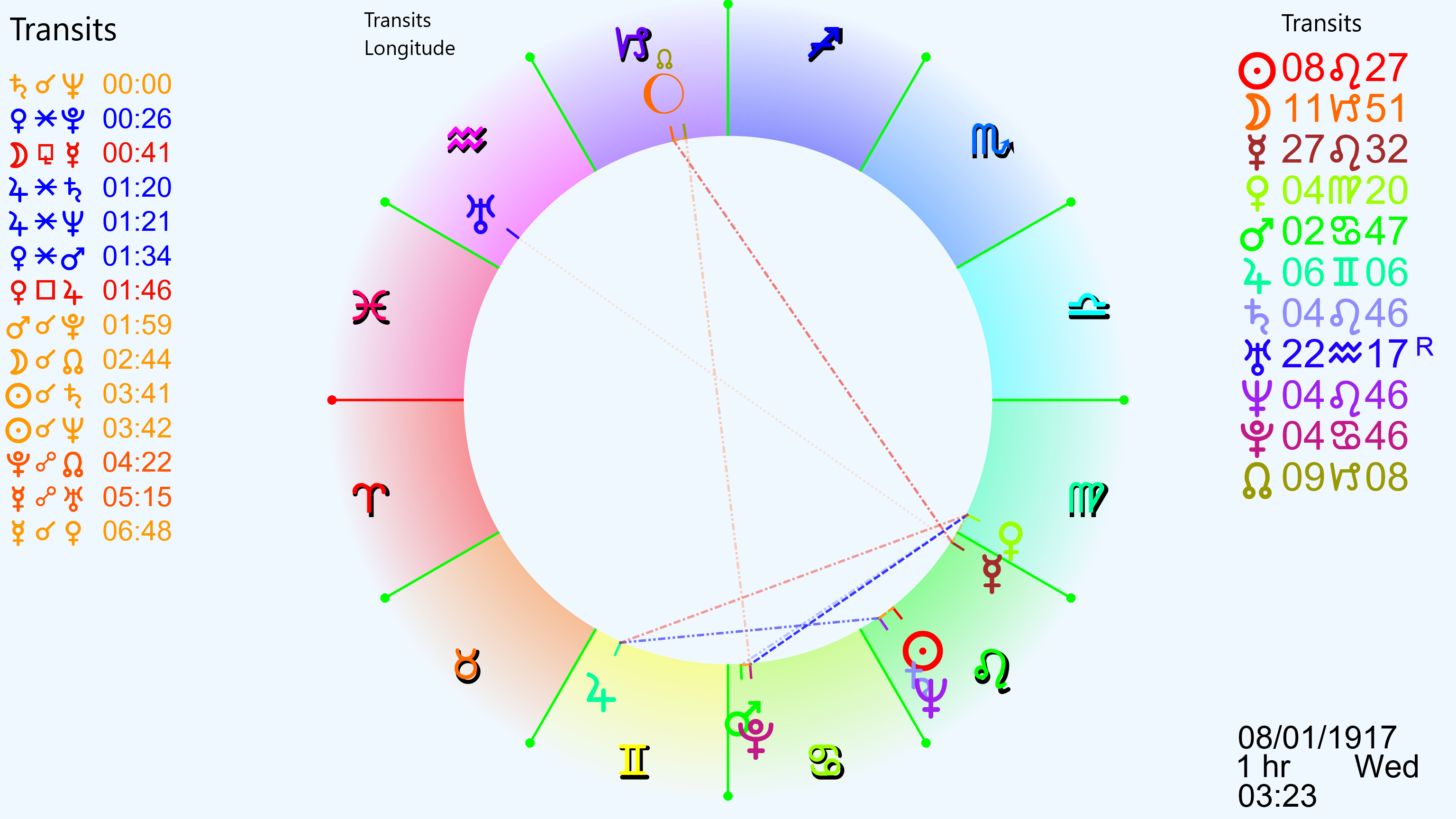 The break from astrology as a combination of left and right brain activities to astronomy as a left brain activity can be set at the year 1543 when Nicky Copernicus’s book De Revolutionibus was published (after he died) thought the ideas in that book were put down on paper in 1514 (shortly before Martin Luther created trouble by posting his beliefs). Looking at the graphical ephemeris for that year shows Saturn square Pluto and Neptune opposite Jupiter. The Jupiter opposition suggests, among other things, a separation between the mystical of Neptune and the more practical, growth-oriented nature of Jupiter. Jupiter can be thought as ruling capitalism, something that has taken over the world. Note, however, that all the “fathers of modern science” were astrologers as well. Kepler’s theories are the basis of the computation of planetary position used in astrological computer programs.