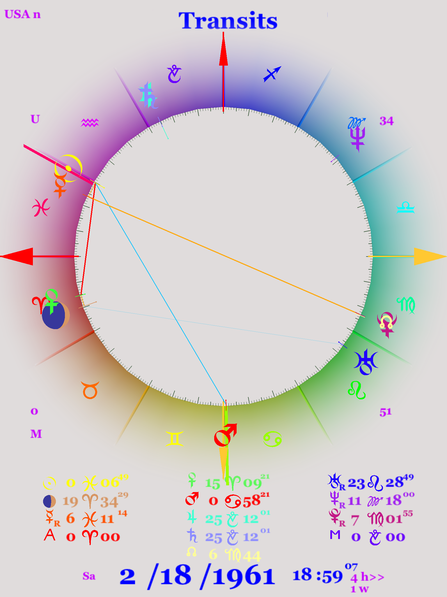 Mea Culpa: I did not see this happening myself, since at the time I favored the Gemini Rising USA chart, if I even thought about a chart for the United States, and even though I had read the Dane Rudhyar book (Astrology of America’s Destiny) that promoted the Sibly chart, and at the time I thought little of Saturn and Pluto transits, and hadn’t looked at any past transits. But 9/11 seemed such a big event to the United States that it must surely show up in the natal chart for that country, and show up in an appropriate way. Jupiter transits wouldn’t cut it. The aspects to the Sibly chart, as shown in the last post (and very similar to the chart above) are the most appropriate transits possible. If one were to make up the transits for such an event, nothing would be more fitting than the actual chart. Pluto on the Ascendant describes 9/11 to a tee.